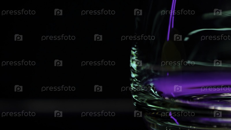 Закройте пустое стекло отражением огней. Застежка. Стенка с красочным освещением ночного бара