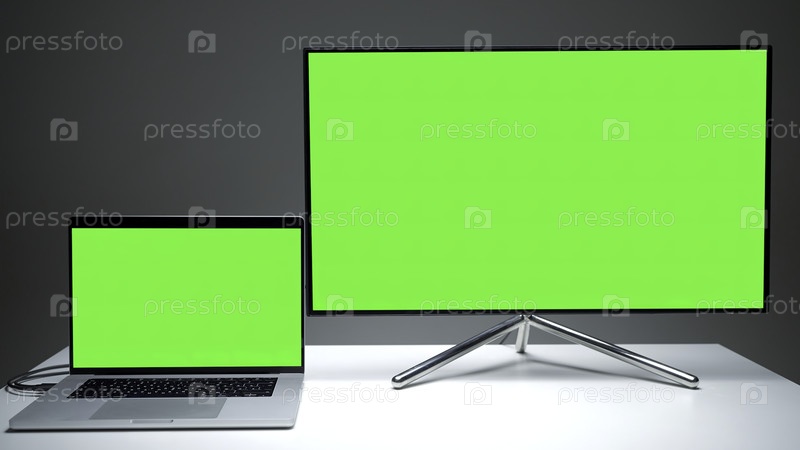Новые модели телевизоров. продолжайте. небольшой ноутбук, удобный в использовании и большой плазменный телевизор с зелеными экранами