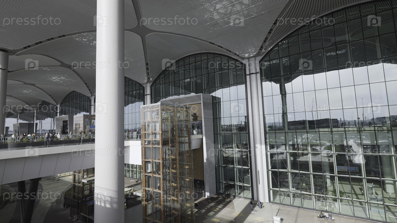 Стамбул, Турция - 20 июля 2022: Красивый современный аэропорт. Идите дальше. Стильный стеклянный фасад современного здания. Фасад нового аэропорта в Турции. Международный аэропорт на территории европейской части Стамбула в Турции