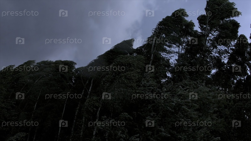 Лес в ветреную и пасмурную погоду летом. творческий. зеленые лесные деревья качаются от ветра в облачную погоду. серое небо и потрясающие деревья в пасмурную погоду. летняя буря