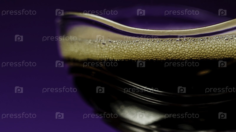 Тёмный напиток с пузырями. Клип для акций. Темный напиток на изолированном фоне. Алкогольный напиток со пеной в баре