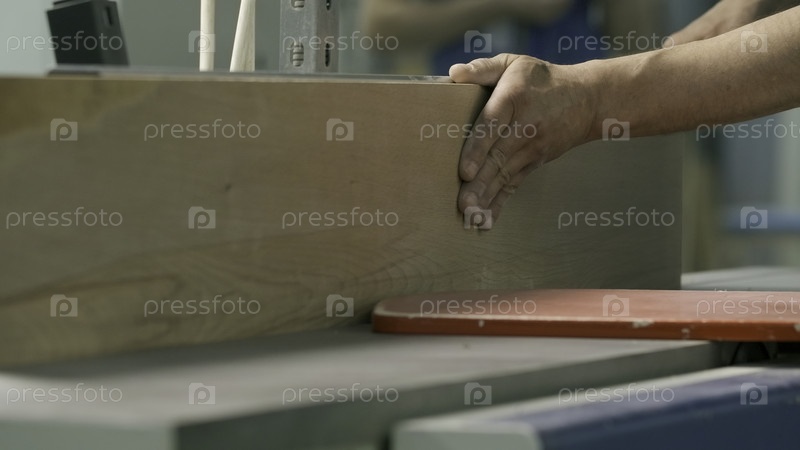 Режущая доска для мужчины в автомобиле.Креативность.Художник обрабатывает деревянную доску на машине.Промышленная обработка и обрезка деревянных досок плотниками и инструментальными машинами