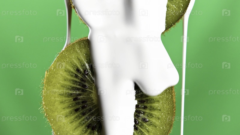 Клубовый снимок цитрусовых фруктов с белой краской. Сток-клип. Видео цитрусовых и протекающей белой жидкости. Творческое видео с фруктами и белым сливком на зеленом фоне