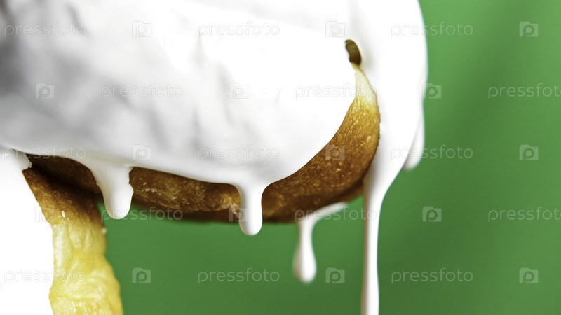 пончики с капельной белой смесью. запасной клип. сладкие пончики с жидким кремом. вкусные булочки с каплящей белой сметаной. конфеты и хромакеи