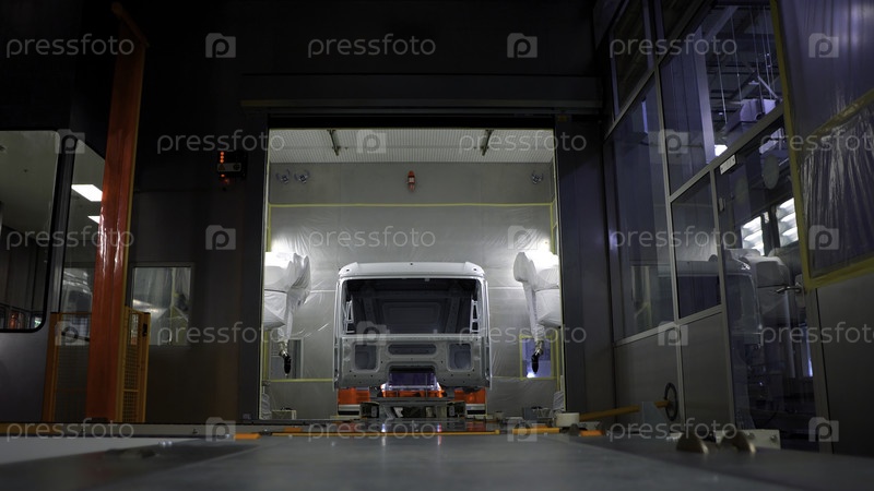 Москва, Россия - 11 мая 2022.Сцена Автосервис, где собирают и демонтируют большие автомобили.Высококачественный 4k кадры