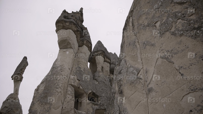 Огромные коричневые камни, снятые снизу и дождь капельничающий сверху