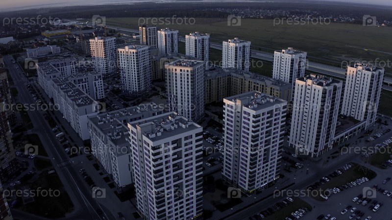 Вид с воздуха на красивый город с многоэтажными зданиями и зеленой средой. резервные кадры. Концепция урбанизации, дома на фоне облачного неба