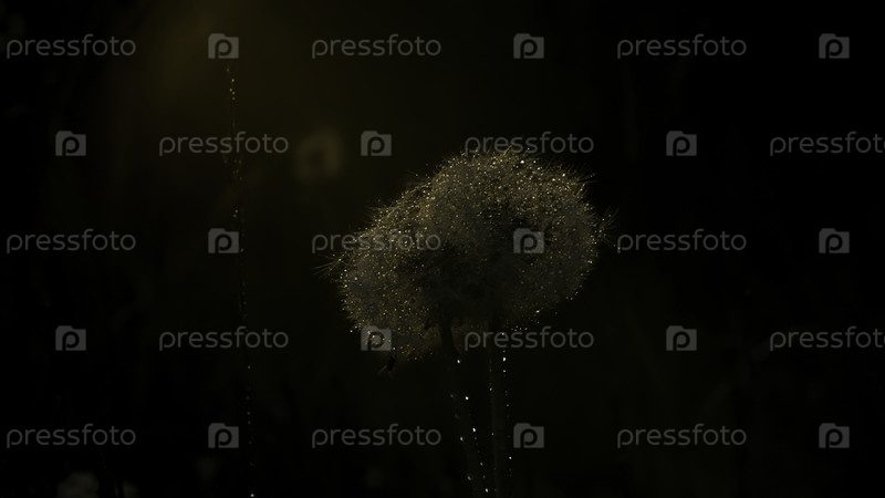 Маленькие пушистые белые одуванчики в зеленой траве, на которые падают солнечные лучи. Высококачественный персонал FullHD