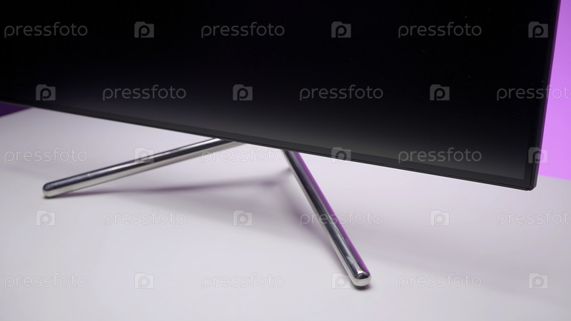 Часть экрана ноутбука или телевизора. Продолжайте. Компьютер или монитор, стоящий на поверхности белого стола