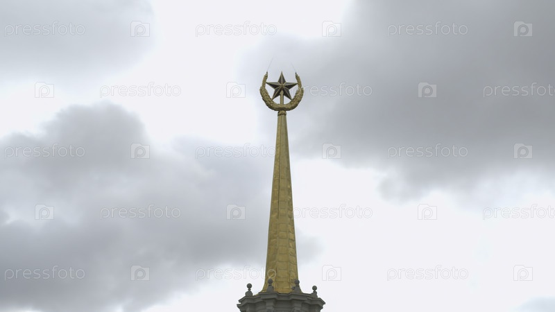Вид на архитектурную звезду. резервные кадры. изображение звезды на вершине строительства. пик на крыше здания со звездами на облачном небе