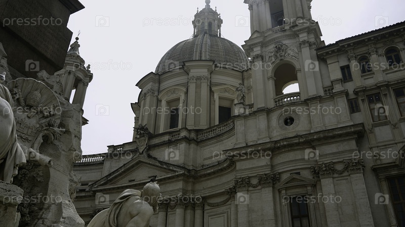 Итальянский памятник, Рим - 27 августа 2022: Действие.Святая Агнесса в агоне сделана из белого камня с украшенными скульптурами с белым небом