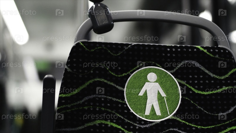 Сидячие места для инвалидов в общественном транспорте. Движение. Знак на сиденье в общественном транспорте для пожилых людей и инвалидов. Специальные места для лиц с ограниченными возможностями