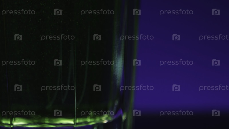 Напиток наливают в прозрачное стекло. Скотч-клип. В стакан заливается зеленый алкогольный напиток. Клубные выпивки в стакане на изолированном фоне