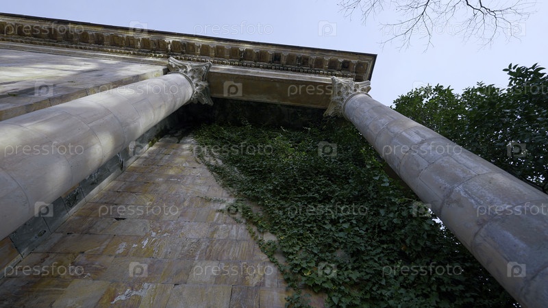 Огромный монумент с зелеными растениями, растущими на стенах и видом на голубое небо