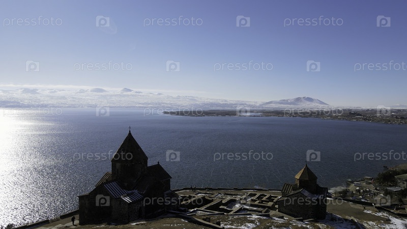 Вид с воздуха высокого холма и деревянного храма на его вершине