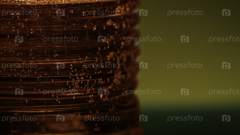 Красочный газированный напиток в прозрачном стекле, изолированный на освещенном фоне стены