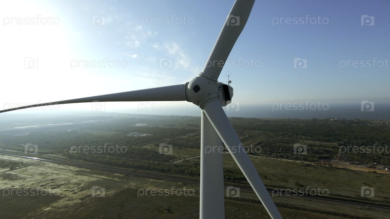 Вид на ветряную мельницу у горизонта.Стрельба.Прекрасный пейзаж с ветряной мельницей на рассвете.Современные ветровые турбины на фоне летнего ландшафта