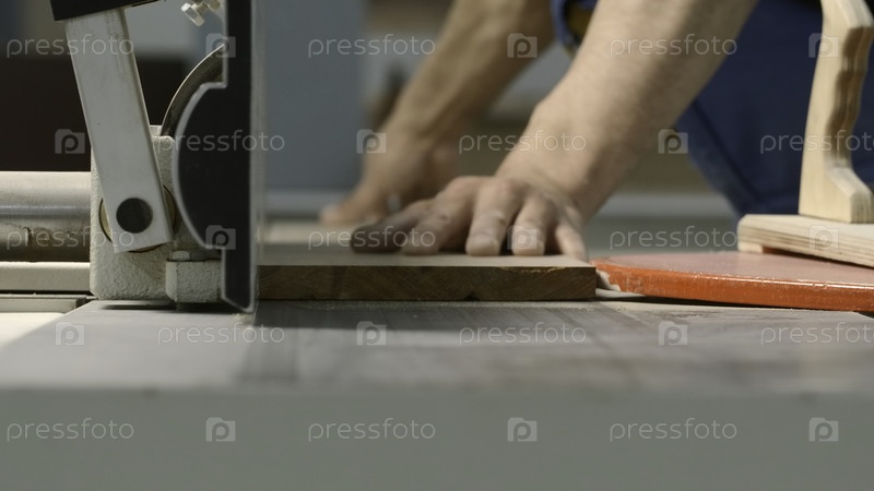 Режущая доска для мужчины в автомобиле.Креативность.Художник обрабатывает деревянную доску на машине.Промышленная обработка и обрезка деревянных досок плотниками и инструментальными машинами