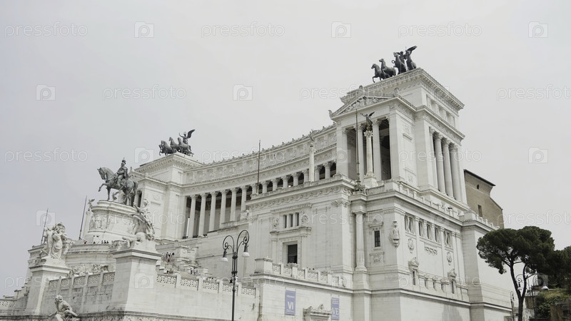 Потрясающий Алтарь Отечества построен на пасмурном фоне.Продолжайте.Национальный памятник Италии, концепция архитектуры и искусства