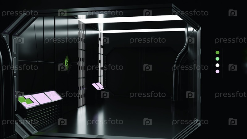 Темный фон. дизайн. закрытый гараж с черными стенами и железными дверями в анимации
