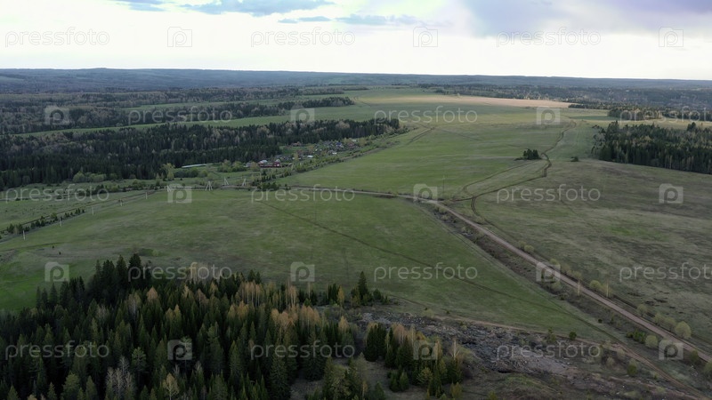 Спокойный живописный пейзаж.Клип.Поля с высокими красочными домами, травой и небольшими жилыми домами и дорогами