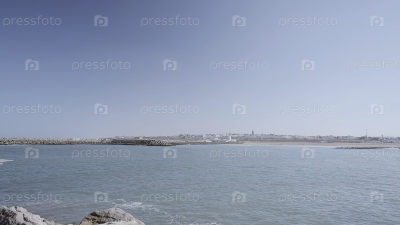 Огромные груды камней возле берега и вы можете увидеть глубокое море, в центре которого находится небольшой остров с крестом