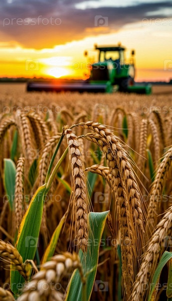Уборка, комбайнер на поле пшеницы