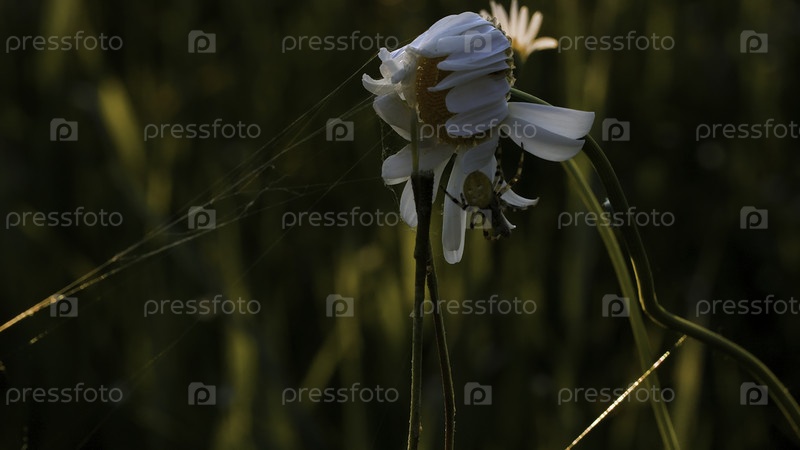 Природа в макрофотографии.Креативность.Маленькая ромашка, которая висит на маленькой стоножке и прилипает к ней.Высококачественный персонал FullHD