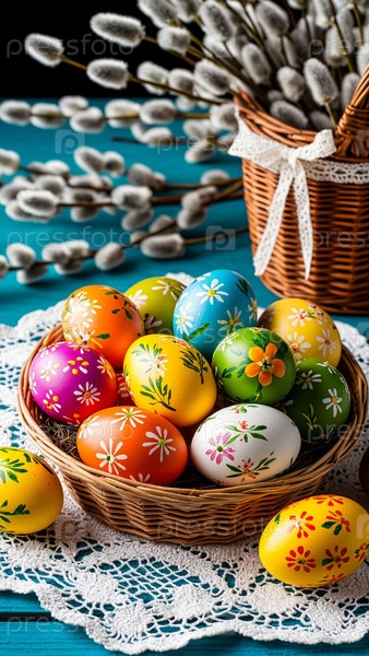 Окрашенные яйца и вербы