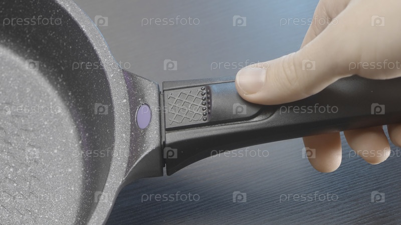 Закройте новую сковородку съемной ручкой.Продолжайте.Концепция кухонных принадлежностей для приготовления пищи