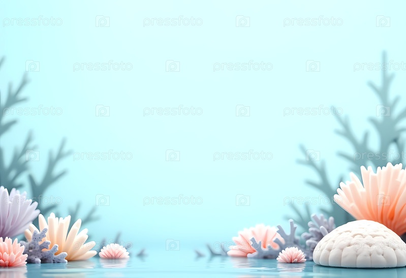 Элегантные коралловые образования возникают на спокойном голубом фоне, создавая мирную водную среду.Мягкие пастели сочетаются для улучшения красоты этого подводного рая