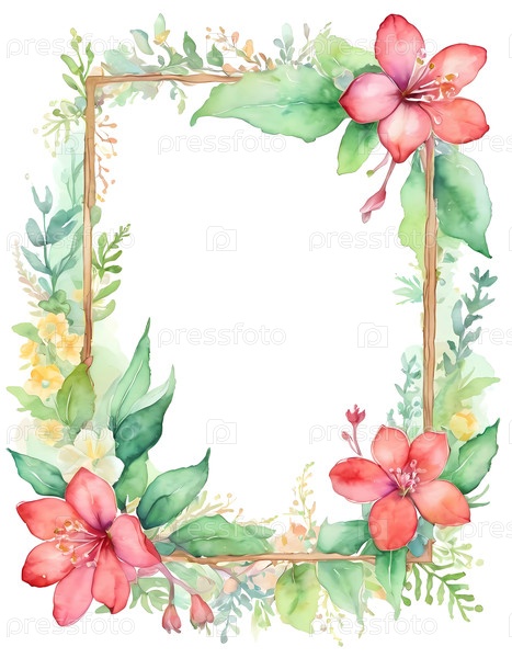 Красивые цветы камелии в акварелях, обрамляющие пустое пространство для сердечных сообщений по особым случаям