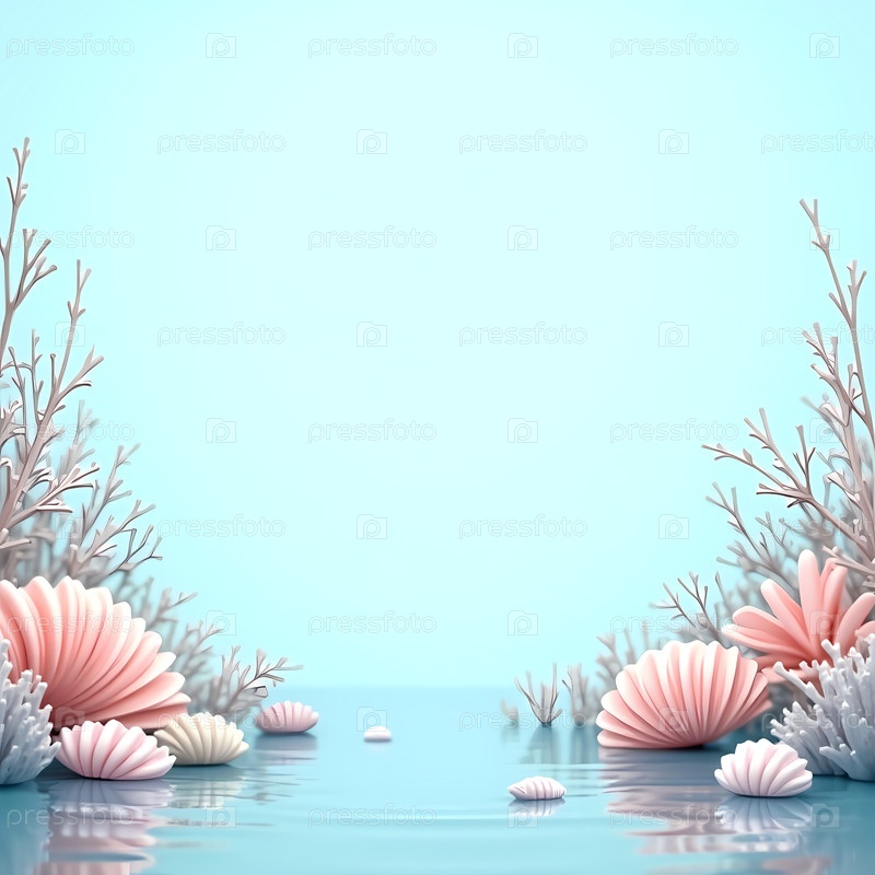 Спокойный подводный ландшафт разворачивается с яркими кораллами и различными моллюсками, расположенными вдоль спокойной береговой линии.Мягкие голубые воды отражают красоту творения природы