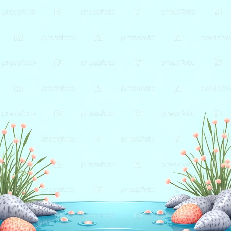 Деликатная вода отражает небо, окруженное гладкими камнями и живыми растениями.Мягкие цветы добавляют цвет, создавая спокойную природную обстановку, идеально подходящую для расслабления