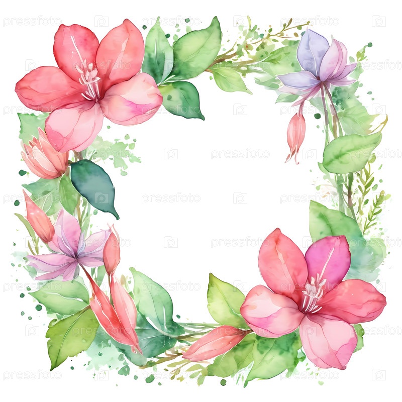 Нежные цветы камелии в красивой акварельной раме для сердечных приветствий и праздников в любое время года