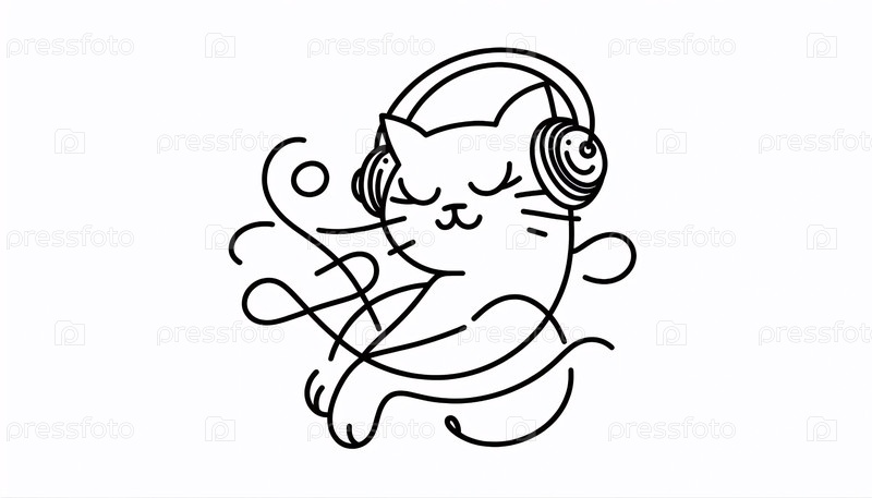Минималистское линейное искусство кошки с наушниками, созданное Ай