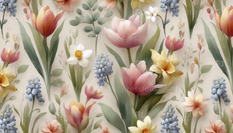 Нежные акварельные цветы для весенних ремесел бесшовный узор, Ai generated image