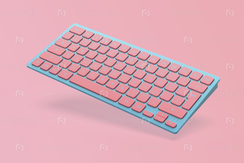 Синяя беспроводная компьютерная клавиатура с розовыми клавишами