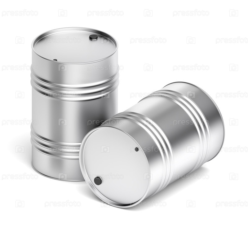 Стальные бочки на белом фоне
