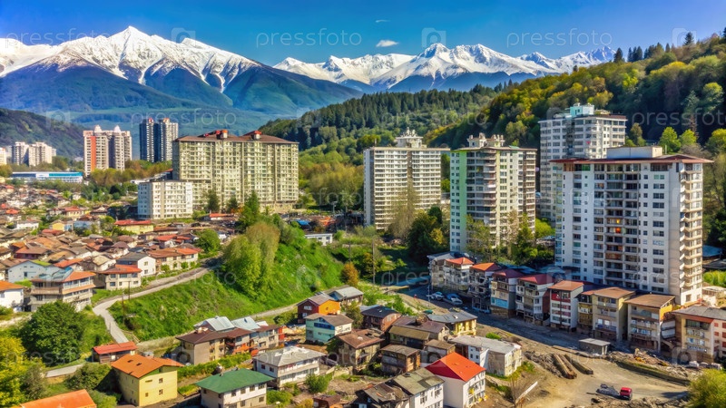 Вид с воздуха жилых зданий в Адлере, Сочи, Россия