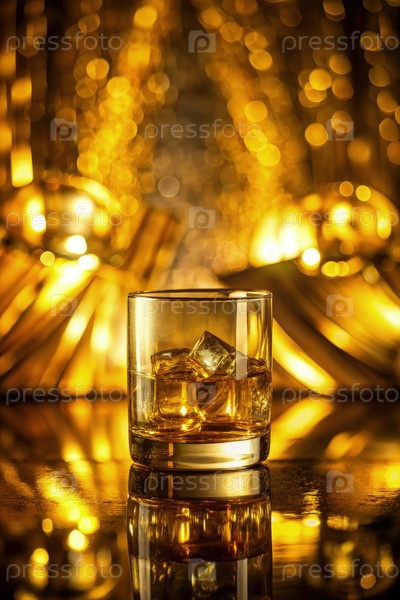 Виски 'Золотой час' с кубиками льда Generating AI