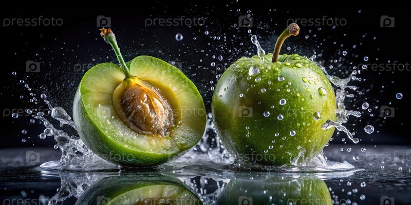 Зелёная слива в воде, генерирующая ИИ