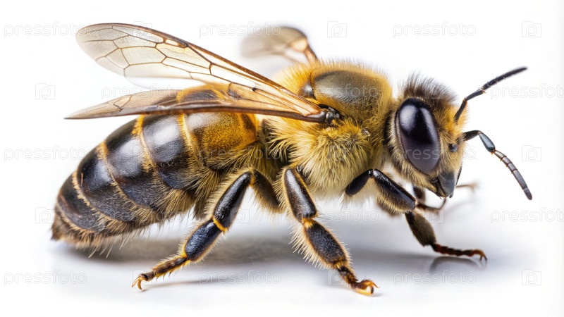 Вид медовой пчелы, изолированный на белом фоне