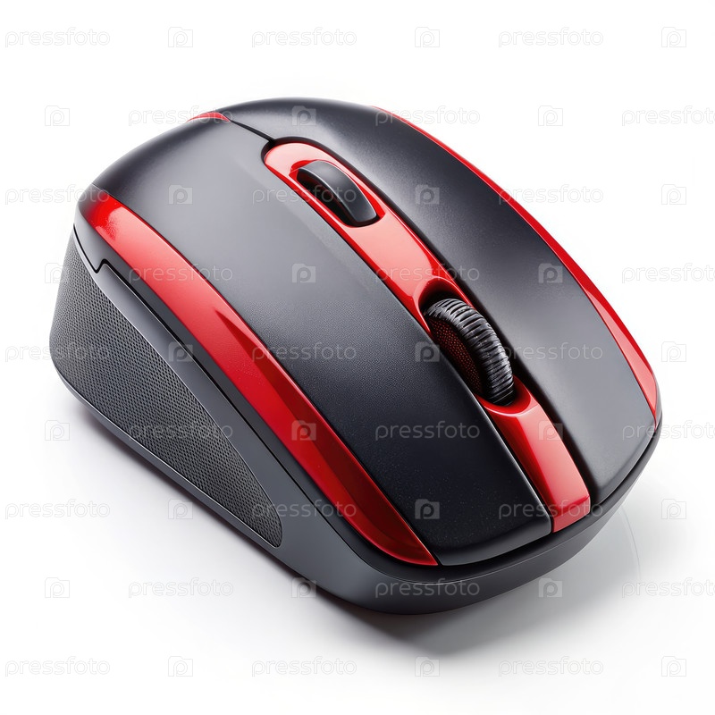 Черно-красная компьютерная мышь на белой поверхности, генерирующая ИИ