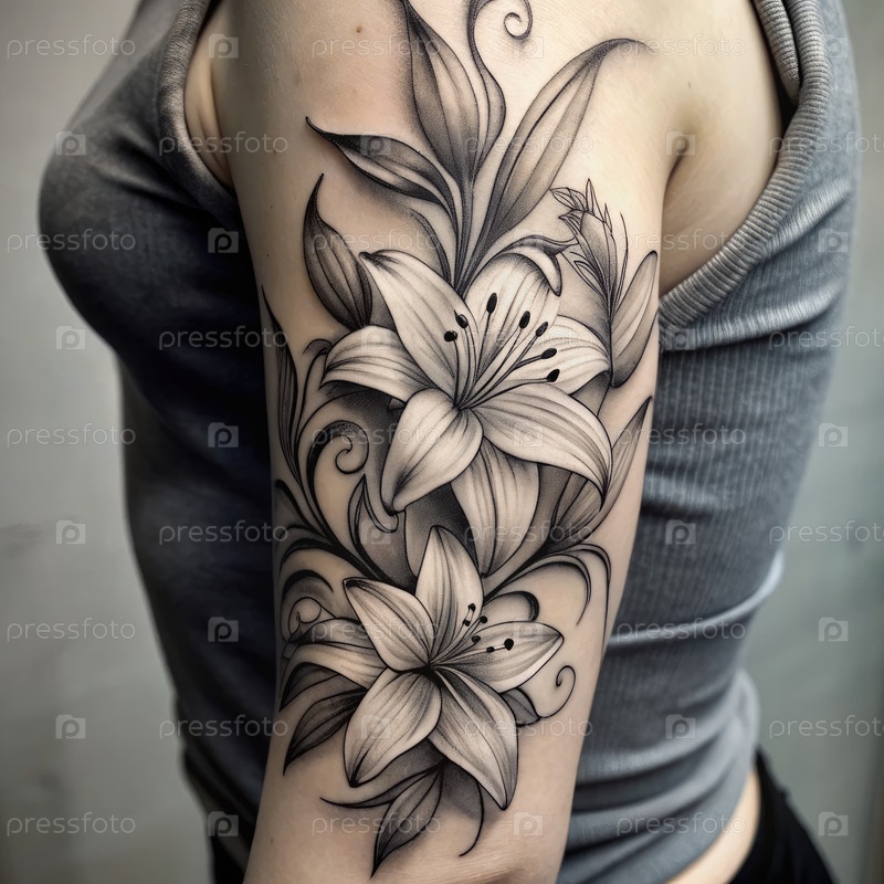 Женская рука с татуировкой Лилии Flower Generating AI