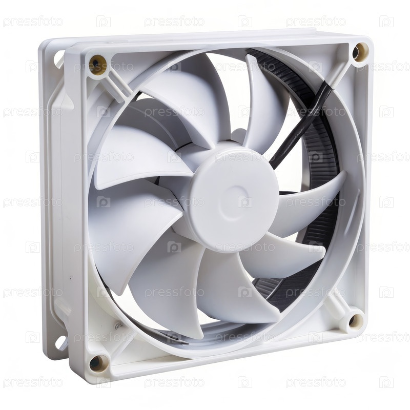 Белый компьютерный вентилятор для системы вентиляции на белом фоне