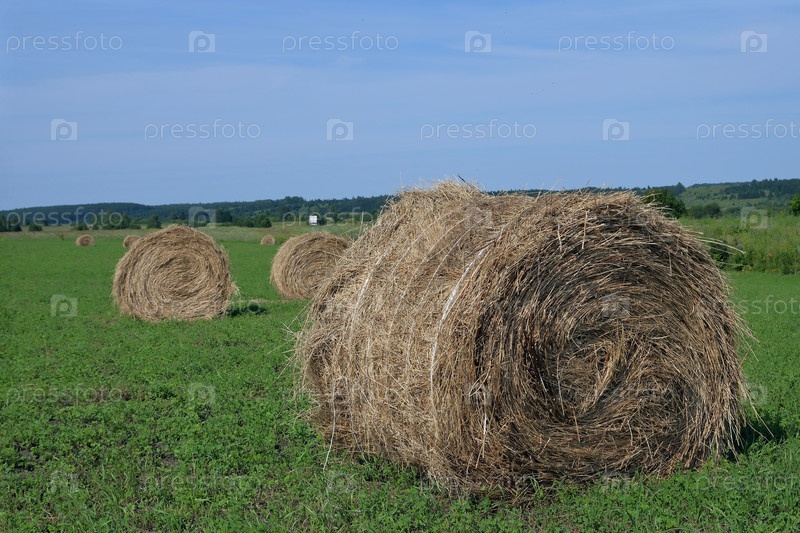 Сенокосы в полях - большие, плотно скрученные цилиндры (роллы) из высушенной травы, которые получаются после стрижки и прессования сена механическими средствами при помощи баллера, служат для сбора кормов для скота на зиму Российская Республика