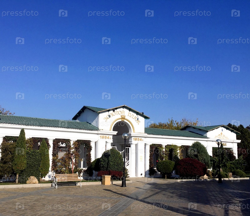 Вход в ресторан 'Золотой пляж 1954'. Анапа. Россия. ноябрь 2018