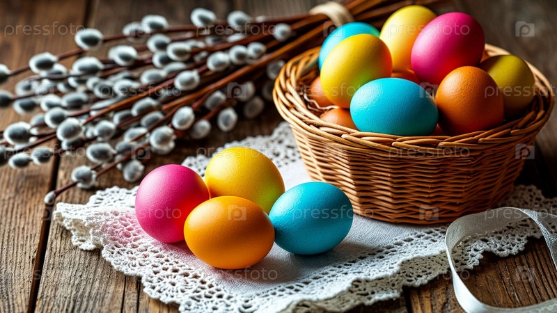 Окрашенные яйца и вербы