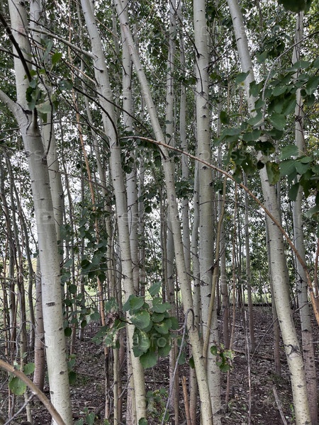 Густые осиновые поры, тонкие стволы деревьев